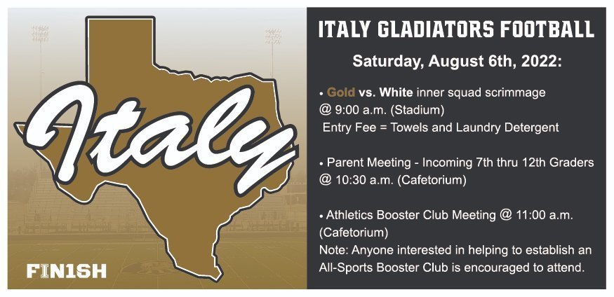 In 2022, Texas Education Agency (TEA) has implemented NEW graduation requirements for graduating Seniors. The reasoning behind the requirement is a large amount of "untapped federal resources available for post-secondary education.” In better terms, there are funds available for education that are now being used and TEA wants our students to have every opportunity available to take advantage. Many parents have started the process of working through the FAFSA (Free Application for Federal Student Aid) because their student is applying to a higher institution or trade school. Students do have additional options and the high school counselor will be discussing this with your student next week. We see that this seems overwhelming and we are inviting representatives from Navarro College financial aid department to assist you here at Italy High School. Students are asked to bring their laptop and representatives can assist in the process. This event will be Wednesday, November 2nd at 5:30-7:30pm in the OLD Cafeteria. Attached you will find resources for this process. As a reminder - Italy ISD does not have a computer lab, so students are asked to bring their laptop to complete this online process.
